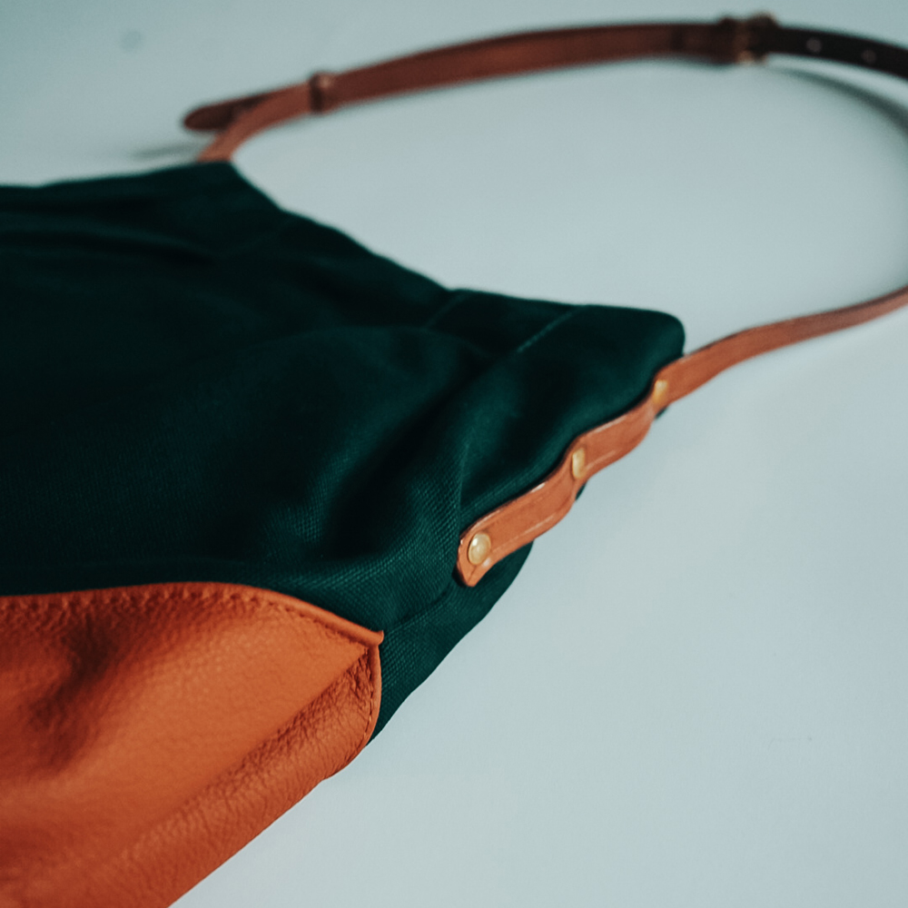 Taška z bavlněného plátna vyšší gramáže doplněná koženými detaily právě tam, kde je to nejvíce potřeba.